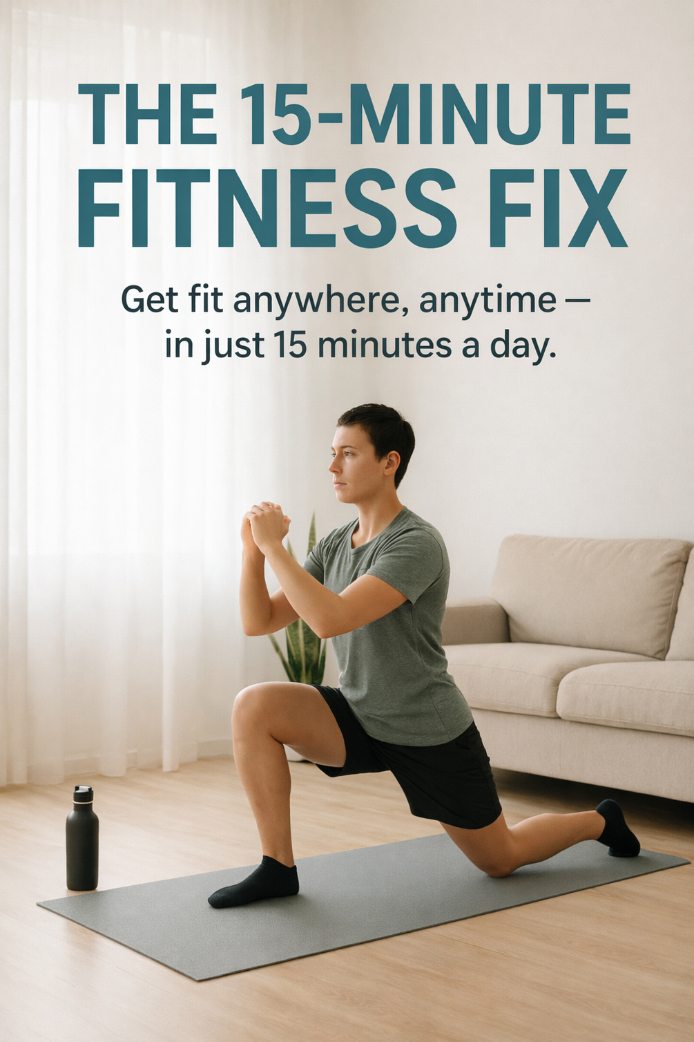 The 15-Minute Fitness Fix is a simple, beginner-friendly fitness guide for busy people who want to get stronger, feel better, and build consistency — without long workouts or strict diets.